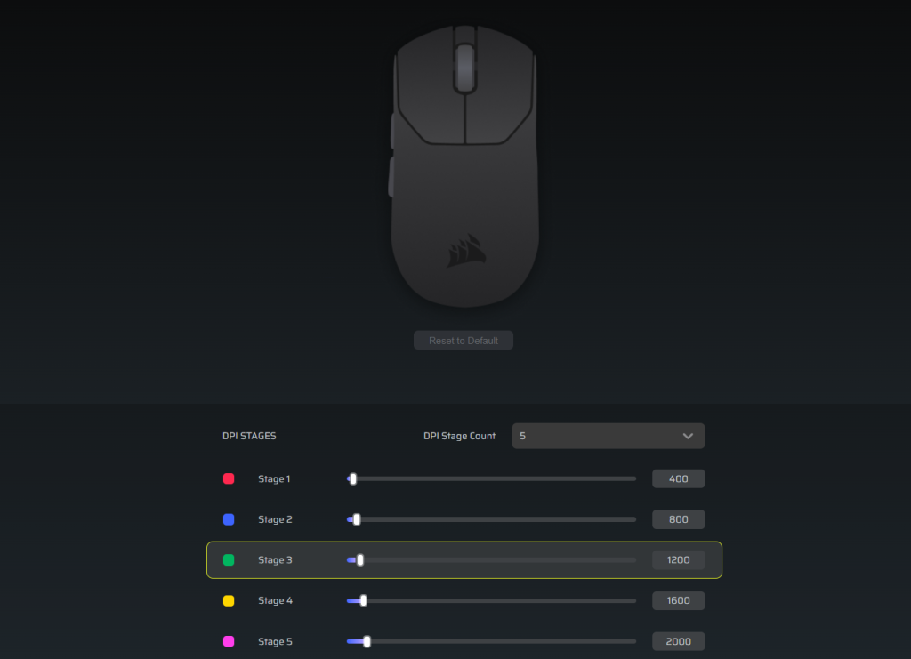 Sabre v2 Pro được trang bị cảm biến quang học Corsair Marksman S – thế hệ cảm biến mới nhất của Corsair, hỗ trợ độ phân giải tối đa 33.000 DPI. Việc thay đổi DPI được thực hiện ngay qua nút vật lý trên thân chuột, đồng thời người dùng có thể tinh chỉnh các mức DPI chi tiết qua nền tảng Corsair Web Hub mà không cần cài đặt phần mềm iCUE truyền thống.